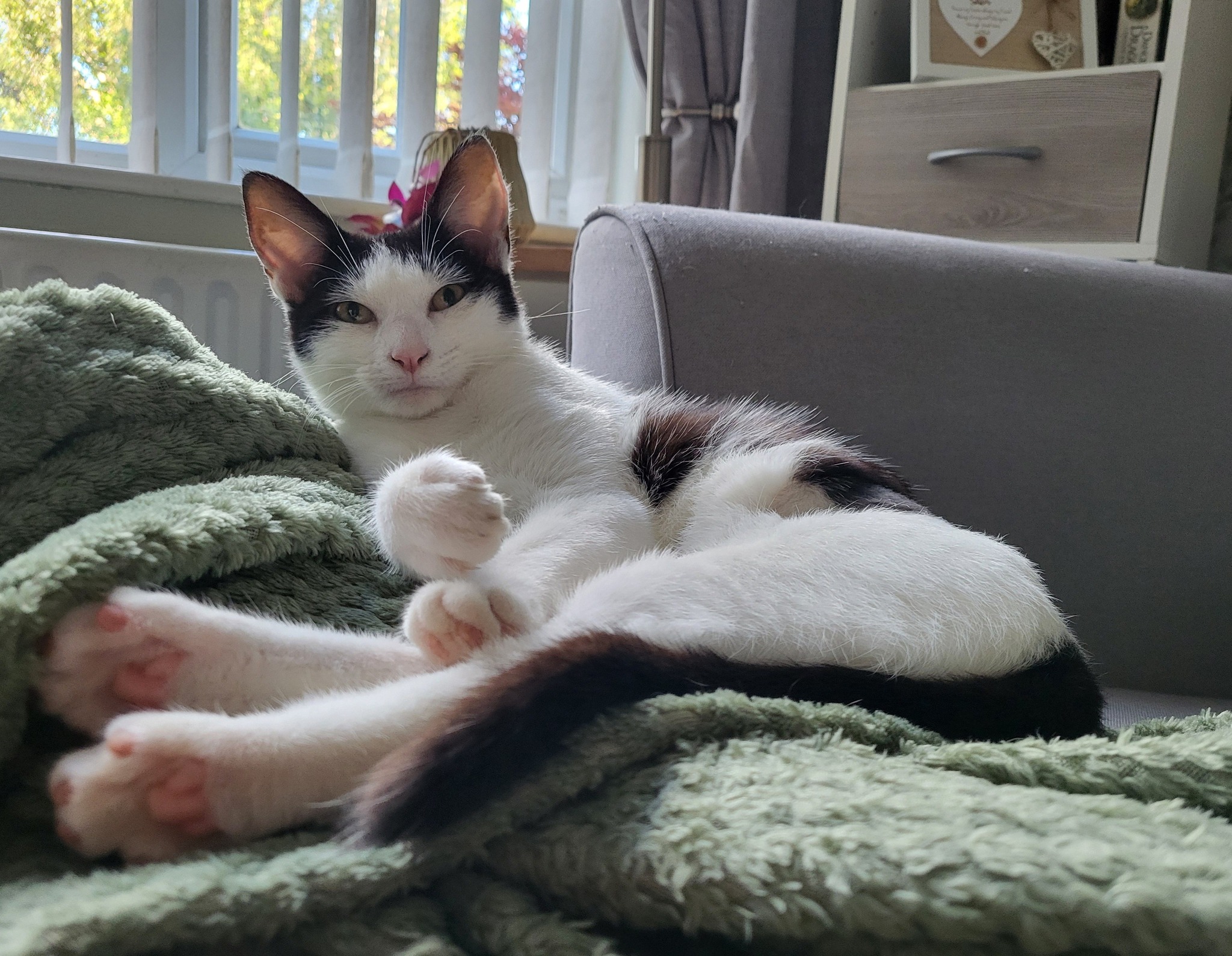 She loves sitting on the window sill watching the outside world so eventually she may like a safe garden to explore away from any busy or main roads.