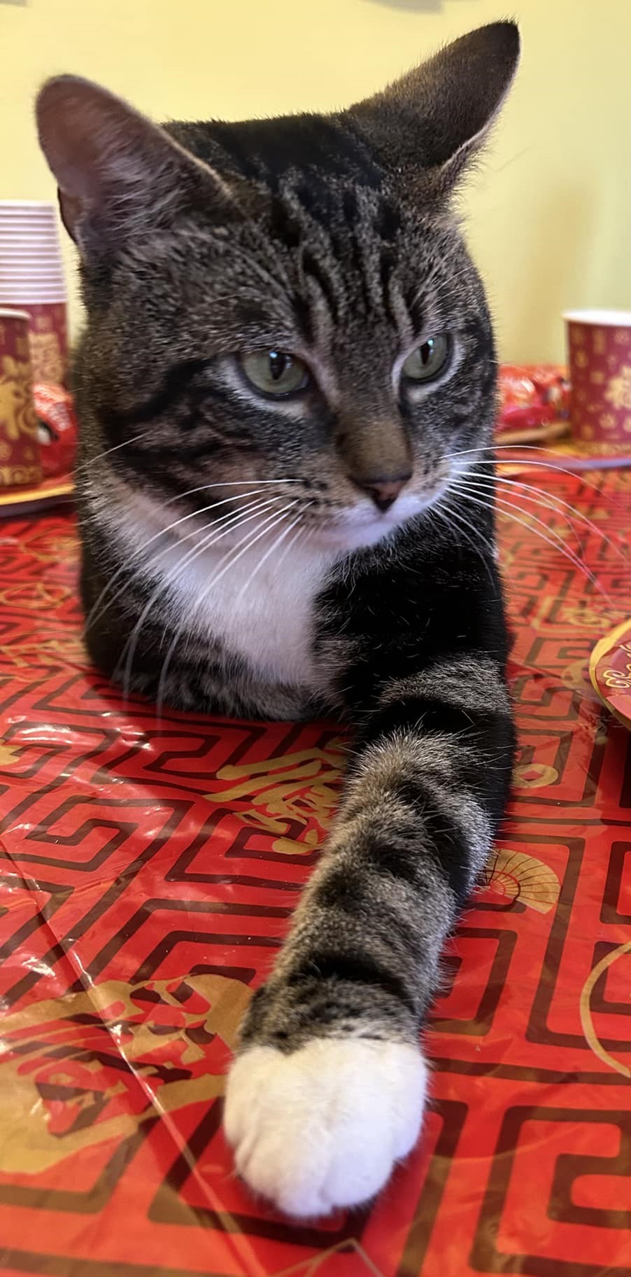 In his previous foster home he was fine with the cat savvy children there, but as he’s not keen on loud noises any children in his new home will need to be cat savvy and over 8 years.